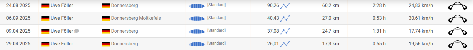 Es sind hier nur Flüge von Vereinsmitgliedern des 1.PDGFC berücksichtigt die im DHV XC hochgeladen wurden – der Pilot kann aber natürlich auch noch in anderen Vereinen Mitglied sein.